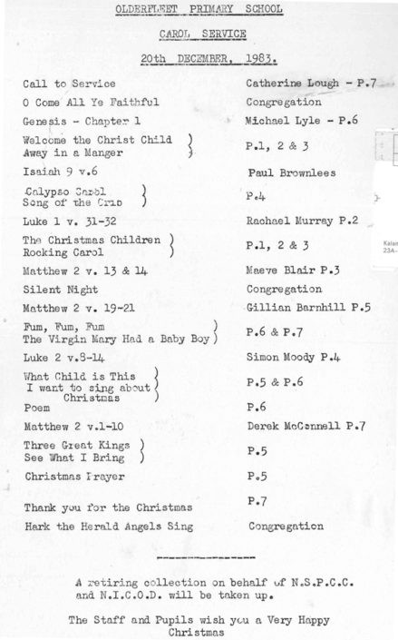 At our own Carol Service on the last day of term, 20th December, we collected £50 for NSPCC and £56 for N.I.C.O.D.