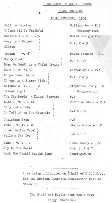 The Infants laid a ‘2p’ line. P4 – 7 had a Tuck Shop. A cheque for £230 was sent to the Save the Children Fund.