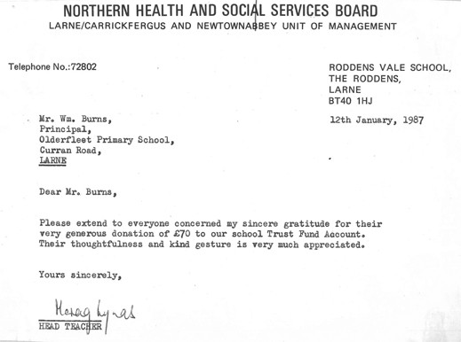 Mr McAdoo came to school. He presented the new Board of Governors Trophy, in memory of Mrs Hveron, to Stacey Casagrande, to mark her exceptional courage and cheerfulness over a period of 2 years of being in and out of Musgrave Park Hospital.