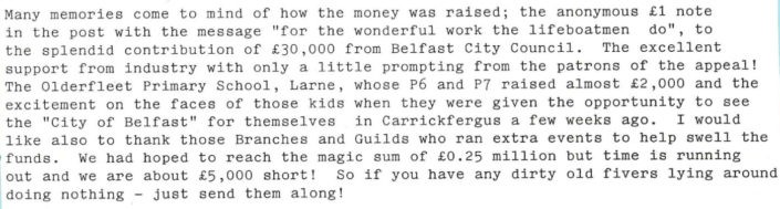 The Carol Service collection was for NHSSB and the Northern Ireland Council for Orthopeadic Development.