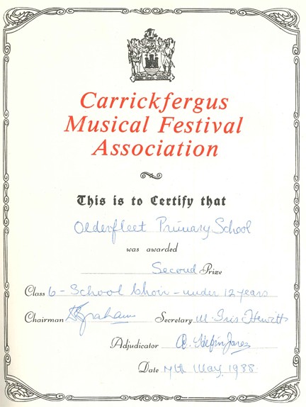Olderfleet played 3 maches : drew 1, won 2. Played Linn P.S. in the semi finals, narrowly beaten by one goal.