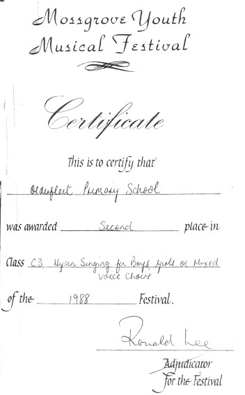 Successful outing for O.P.S. Choir. Second place in hymn singing; third in under 12 class,