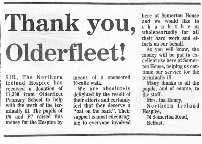 Olderfleet Parents’ Association held a jumble sale in Town Hall. Well over £100 raised!