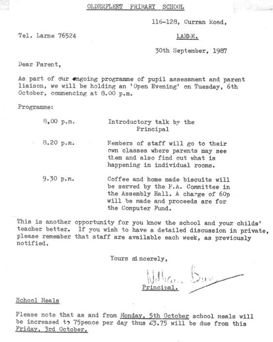 Parents’ Association. Guest speakers Bob & Barbara Morrison. Excellent attendance despite gale force winds! More funds towards new computer!