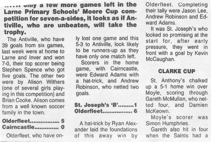 A Team : Fiona Colman (cpt), Joanne Cooke, Ashley Moody, Katharine Tweed, Lynn Hogg, Mary McKendry, Heather Willis (G.K.)