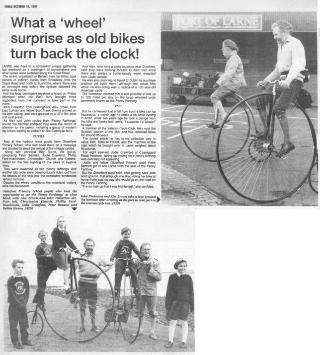 25 Sept Mr McConnell took P5 to see his murals at the Terminal Building. Later the class tried to create its own. P5 was down to look at the murals in the Terminal Building when they heard about the bicycles. We appeared on the UTV news programme at 6 o’clock!