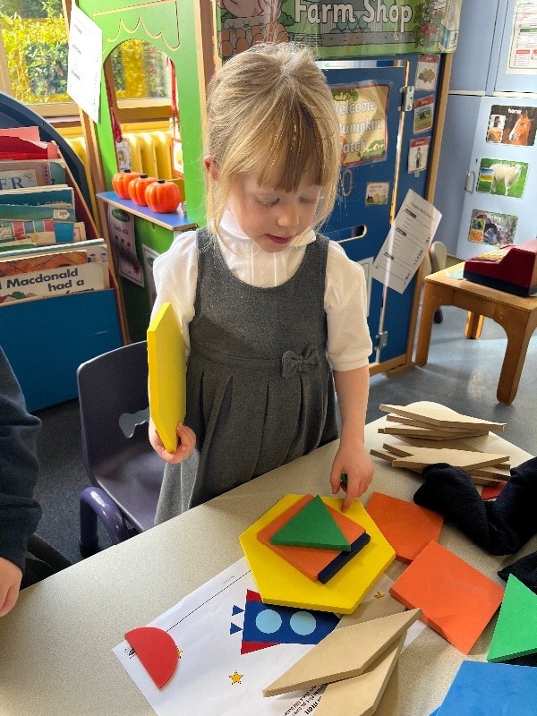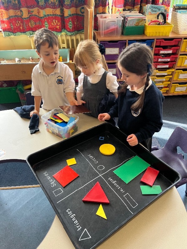 Year 1 have been learning lots about shapes this week! We have created pictures with them through free play and peg mats, have sorted them, described them through touch, and made 3D shape prints.